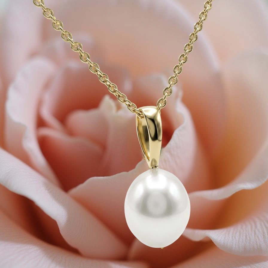 This pendant showcases a genuine Broome pearl suspended within a precisely engineered 9ct gold setting.