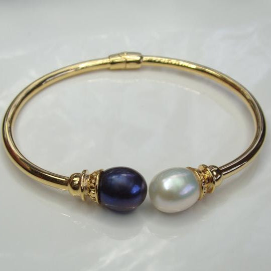 This Beautiful Cultured Freshwater Pearl Hinge Bangle in Gold is a timeless piece that is sure to add an elegant touch to any outfit. It one size fits all design makes it a great gift for any occasion. Made with quality materials and craftsmanship, and comes in Sterling Silver or 925 Gold Electroplated.