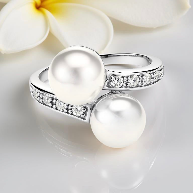 Double Pearl Cubic Zirconia 925 Sterling Silver Ring