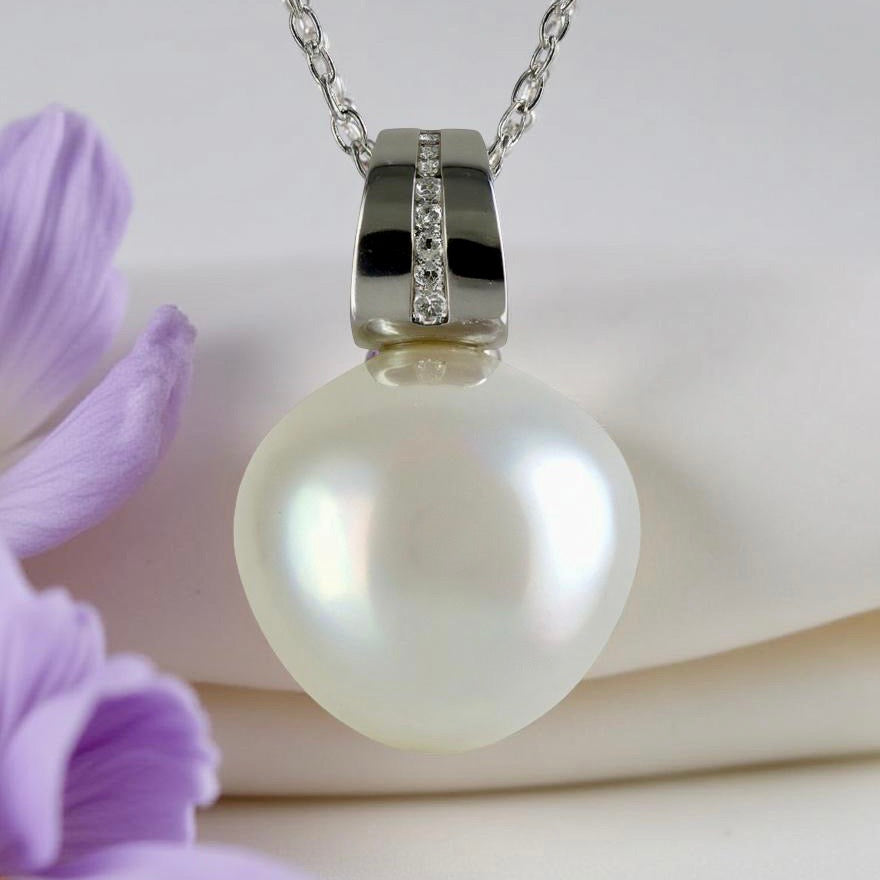 Broome Pearl Pave Set Diamond White Gold Pendant