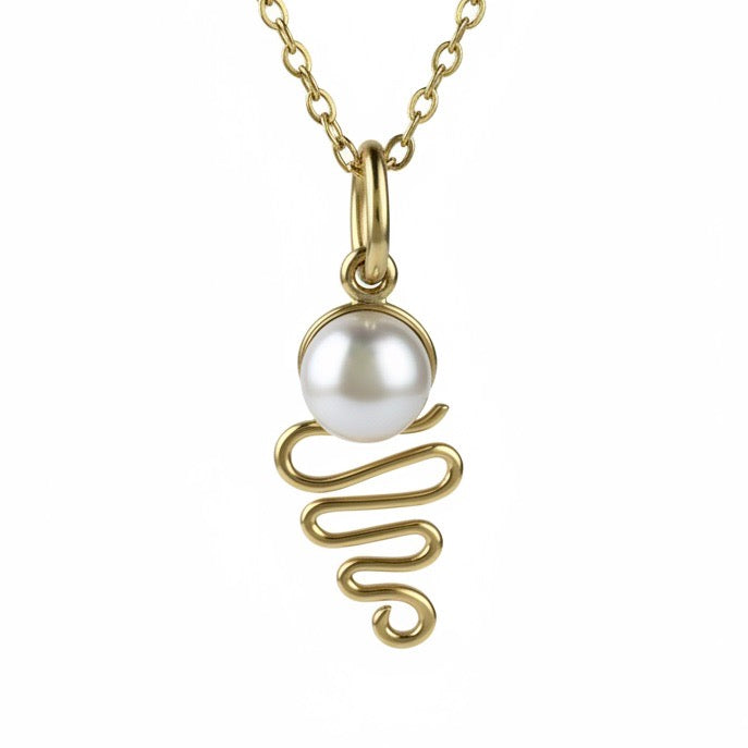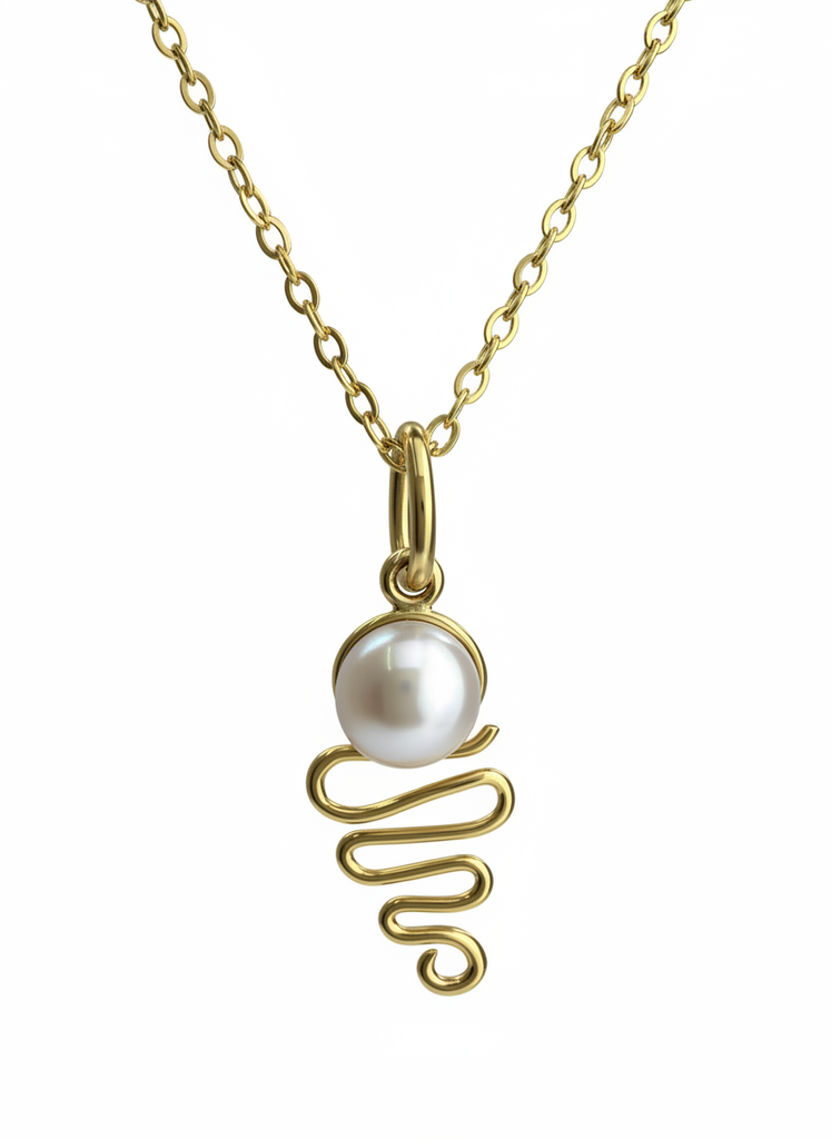 Elegantly hand crafted in 9ct yellow gold, Luna inspired pendant features a lustrous 7.5mm cultured freshwater pearl