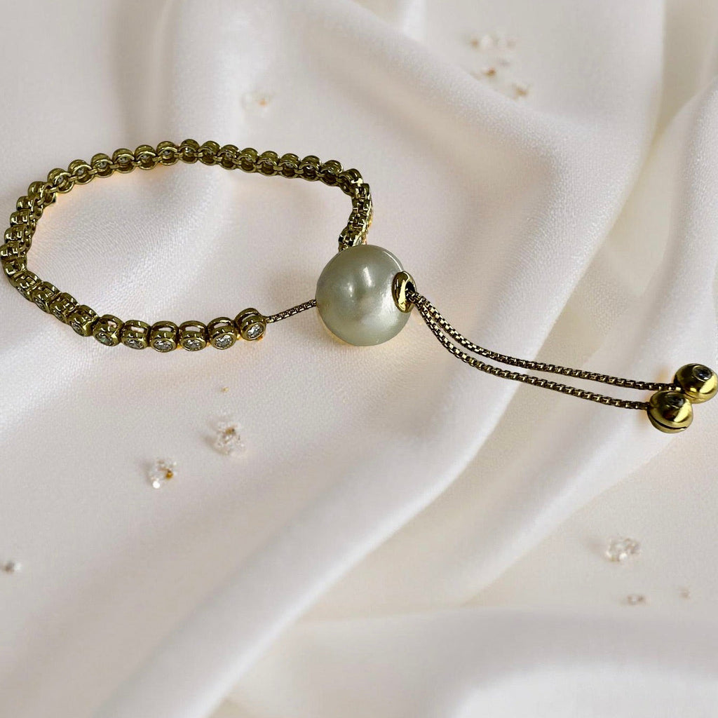 The Champagne Pearl Zirconia Tennis Bracelet features dazzling champagne-hued Pearl and dazzling cubic zirconia stones.
