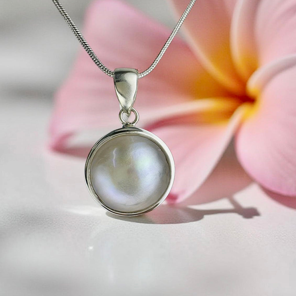 Mabe Pearl Bezel Sterling Silver Pendant This striking pendant features a resplendent blister pearl, prized for its commanding hemispherical form and brilliant surface luminosity.