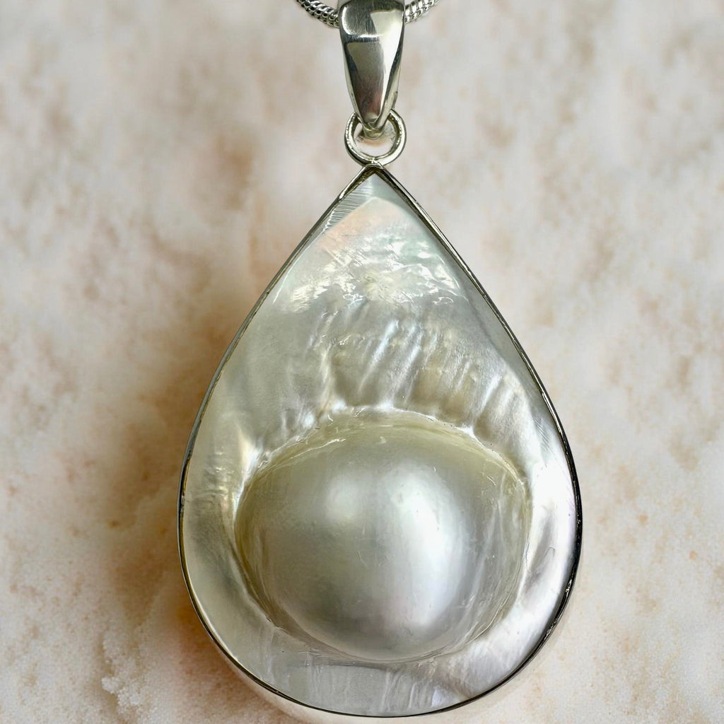 Pinctada Mabe Pearl Silver Drop Pendant