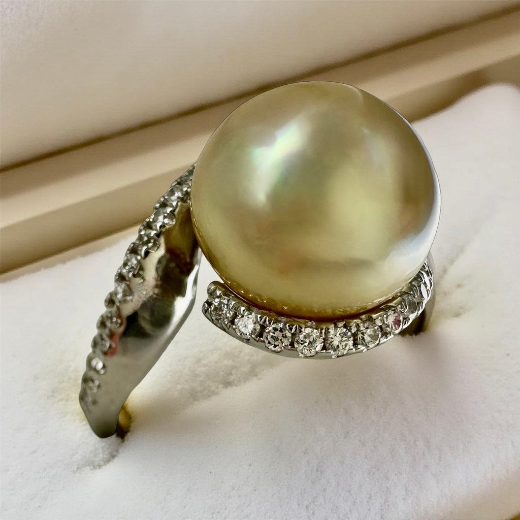 Golden Pearl Silver Cubic Harmony Zirconia Ring