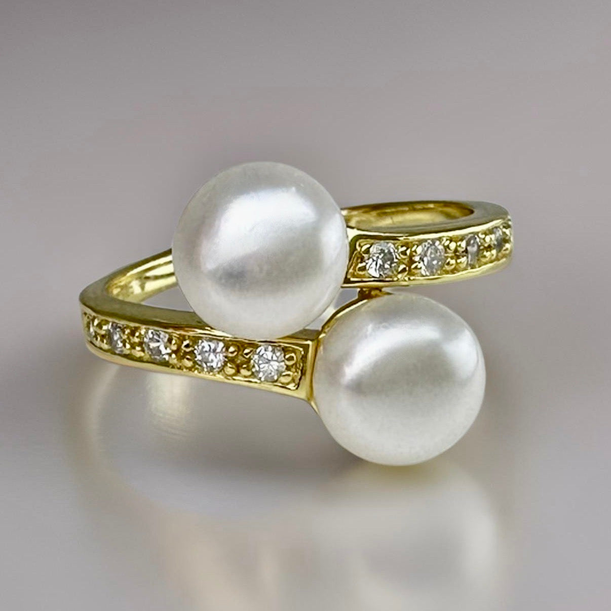 This exquisite Cultured Freshwater Pearl and Cubic Zirconia Ring features a unique "Double Pearl" design, adorned with pave set cubic zirconia for an added touch of sparkle.