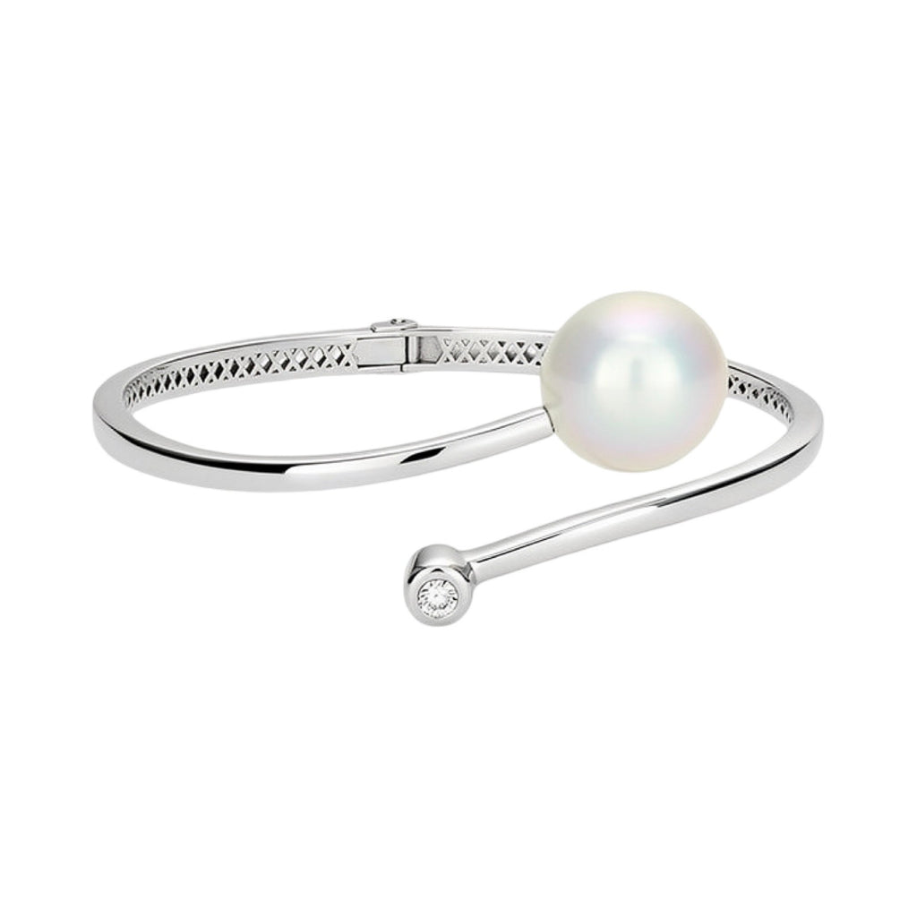 This Broome Pearl Sterling Silver Cubic Zirconia Bangle is an elegant, stylish accessory. It has a classic hinge bangle design that makes it easy to put on - perfect for anyone who wants an effortless and sophisticated look. It's crafted with a stunning pearl and sparkling cubic zirconia stone for added sparkle and luxury.