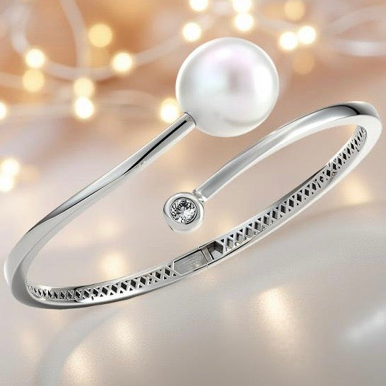 Broome Pearl Sterling Silver Cubic Zirconia Bangle