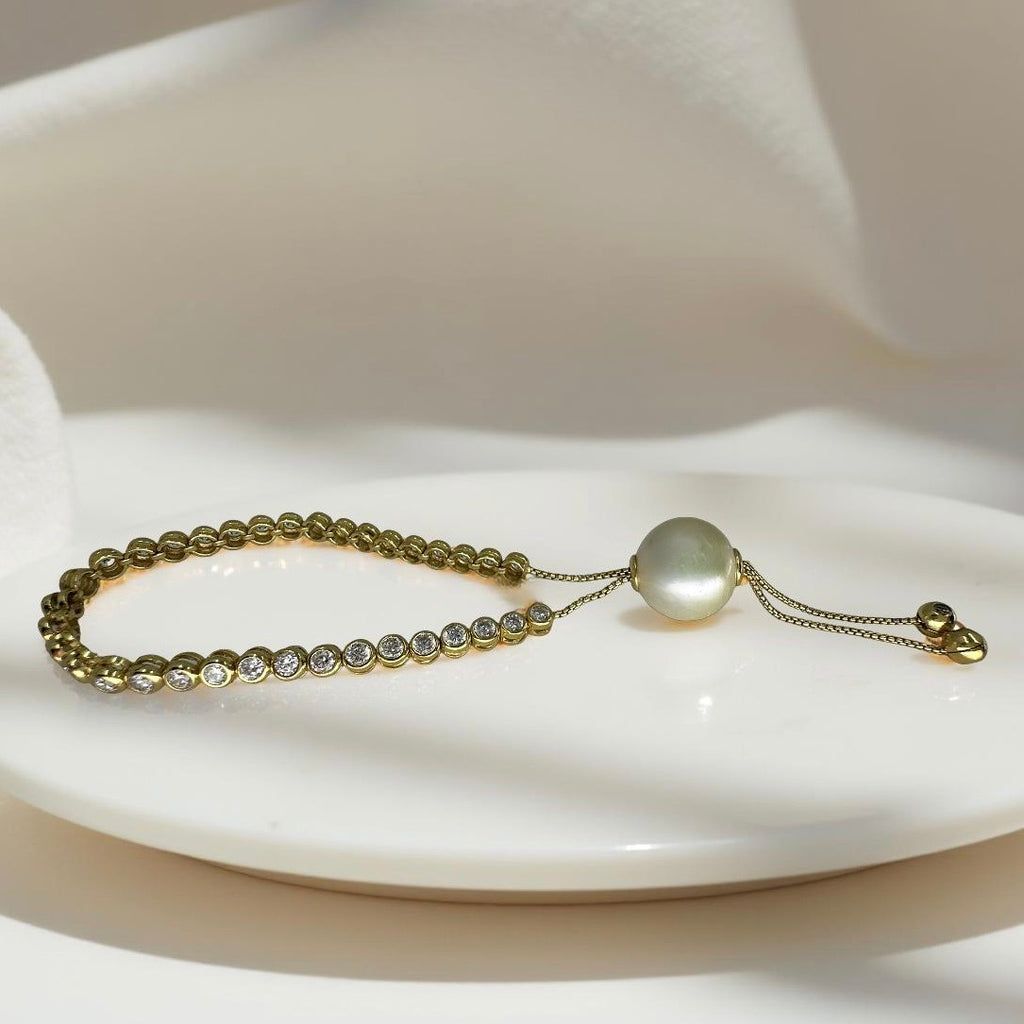 The Champagne Pearl Zirconia Tennis Bracelet features dazzling champagne-hued Pearl and dazzling cubic zirconia stones.