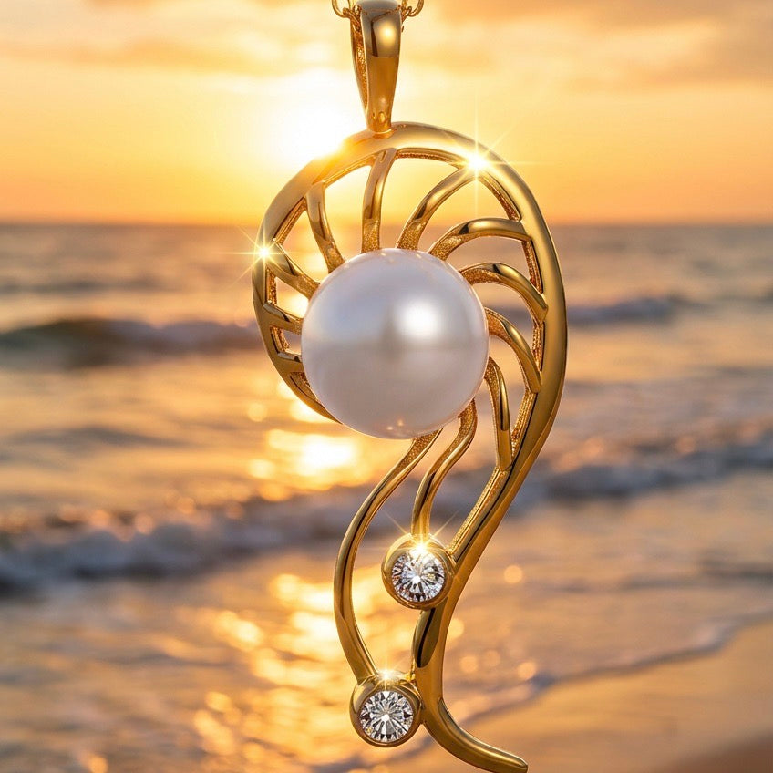 This Freshwater Mangrove Cubic Zirconia Gold Pendant captures the essence of coastal beauty with its shell-inspired silhouette elevated by cubic zirconia.