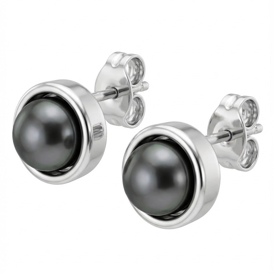 Cultured Freshwater Peacock Black Pearl Studs Sterling Silver