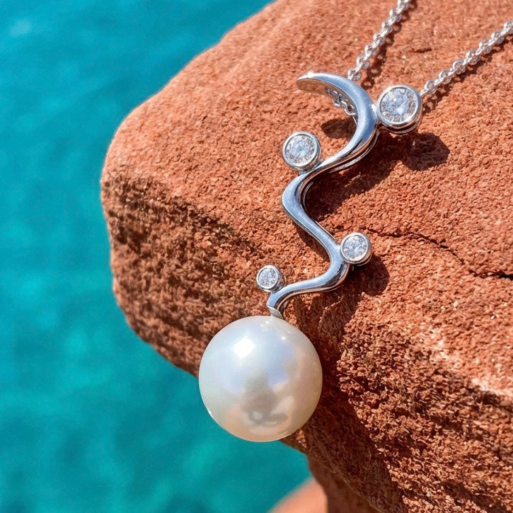 Capturing the ethereal beauty of moonrise over Windjana Gorge, this pendant features brilliant cubic zirconias that mirror the luminous glow of celestial light dancing across the Kimberley's ancient sandstone cliffs. Coordinate with our matching earring collection to complete the look.